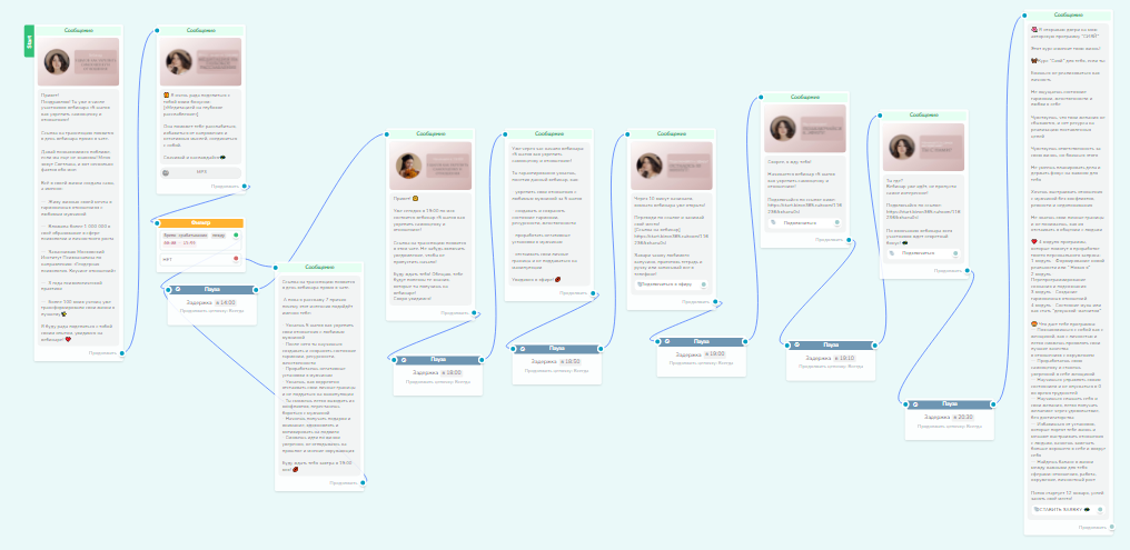Воронка в чат-боте Telegram с выдачей лид-магнита и напоминанием о вебинаре